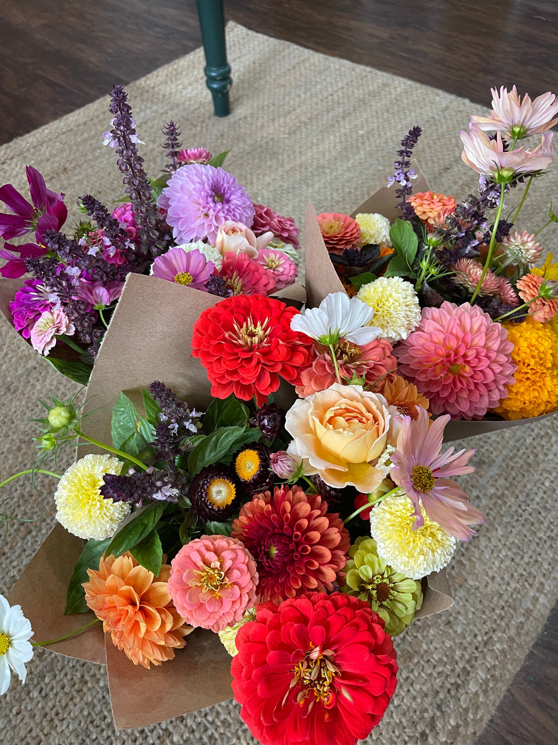 As the seasons change from Summer to Fall, so do the flowers as well. The bouquets will showcase a rotating cast of stars such as lisianthus and dahlias. Each bouquet will highlight what is growing locally at the time which means you will get the freshest of flowers.