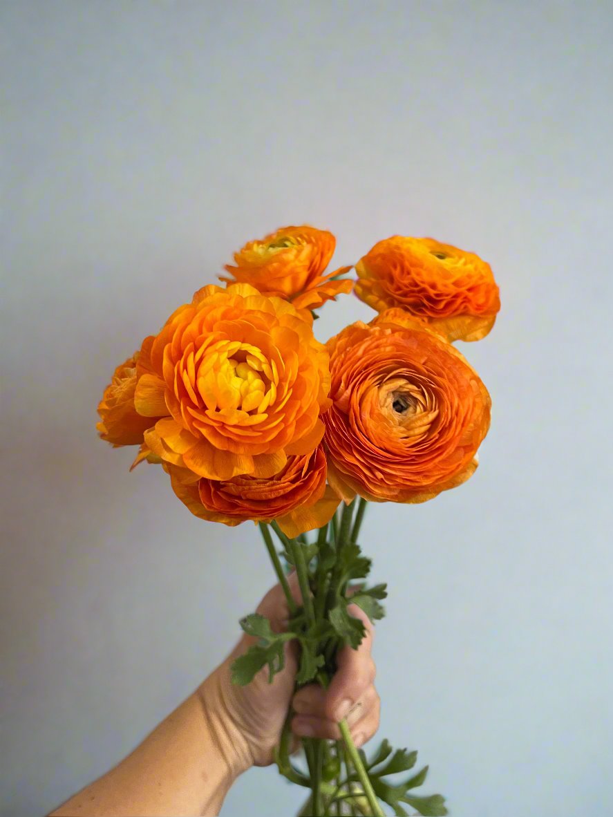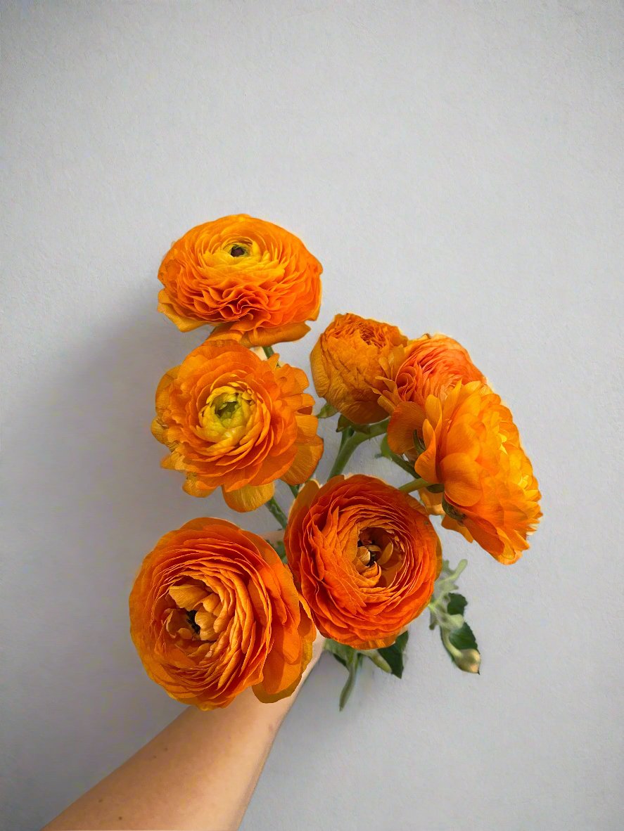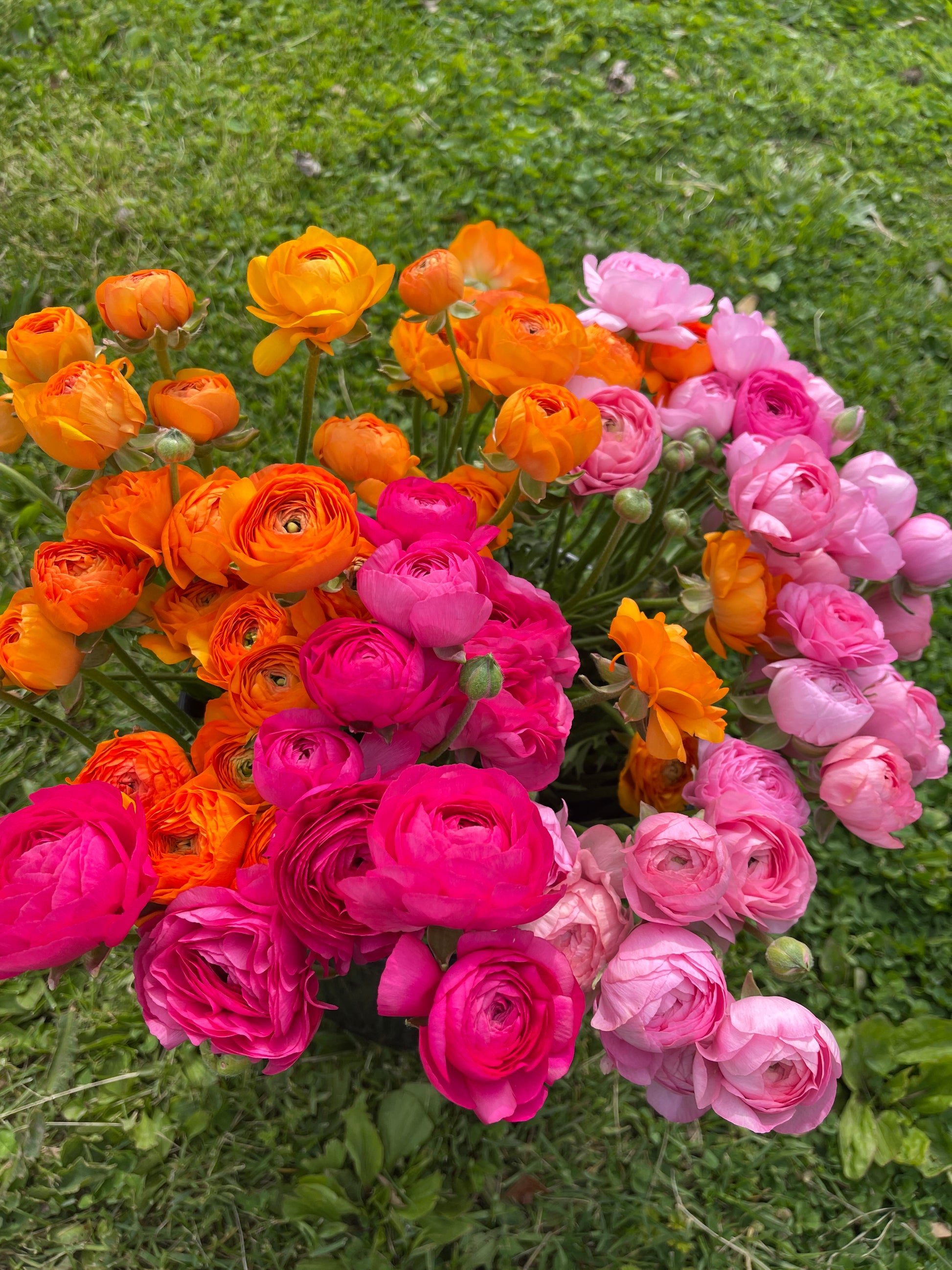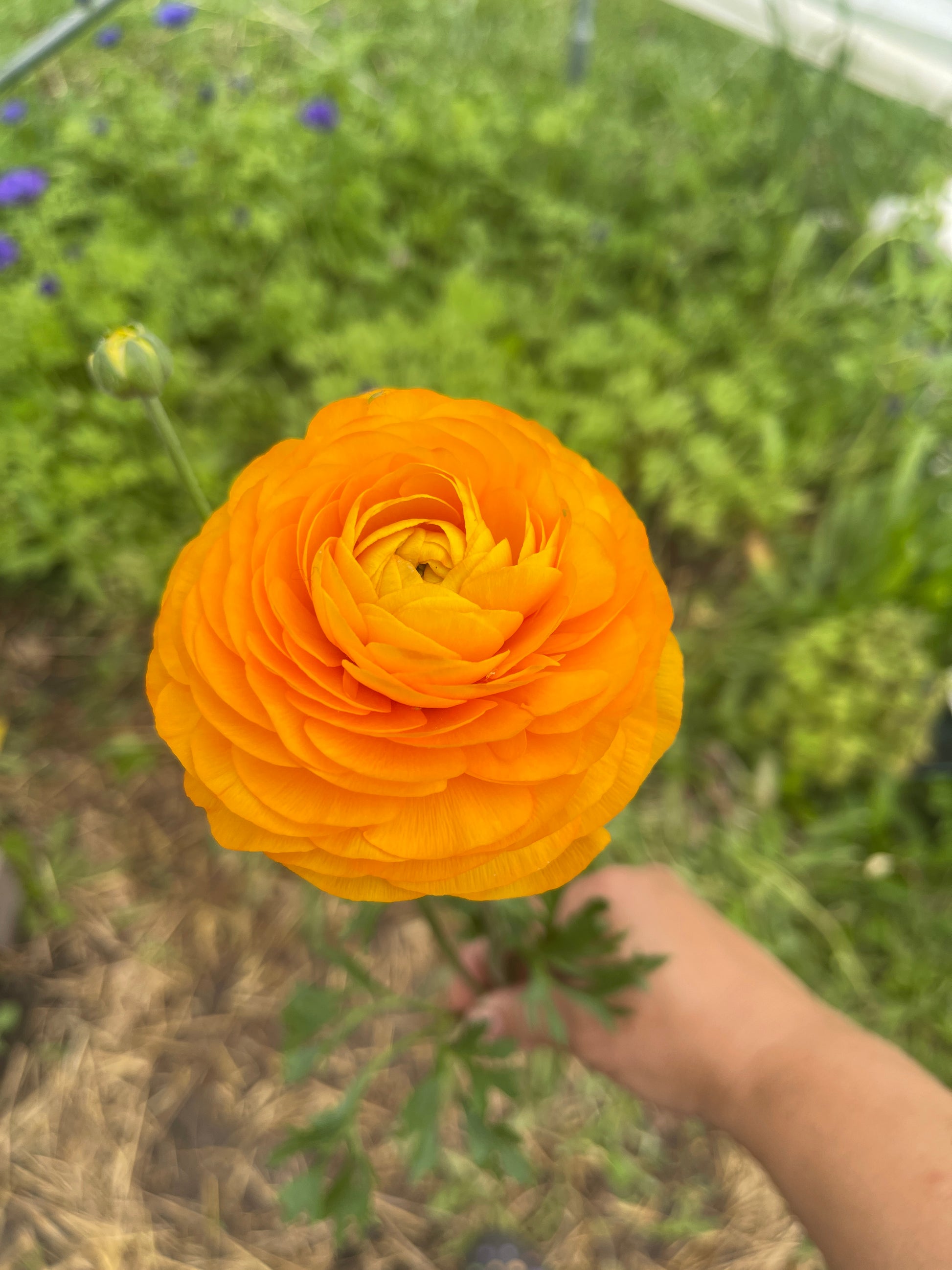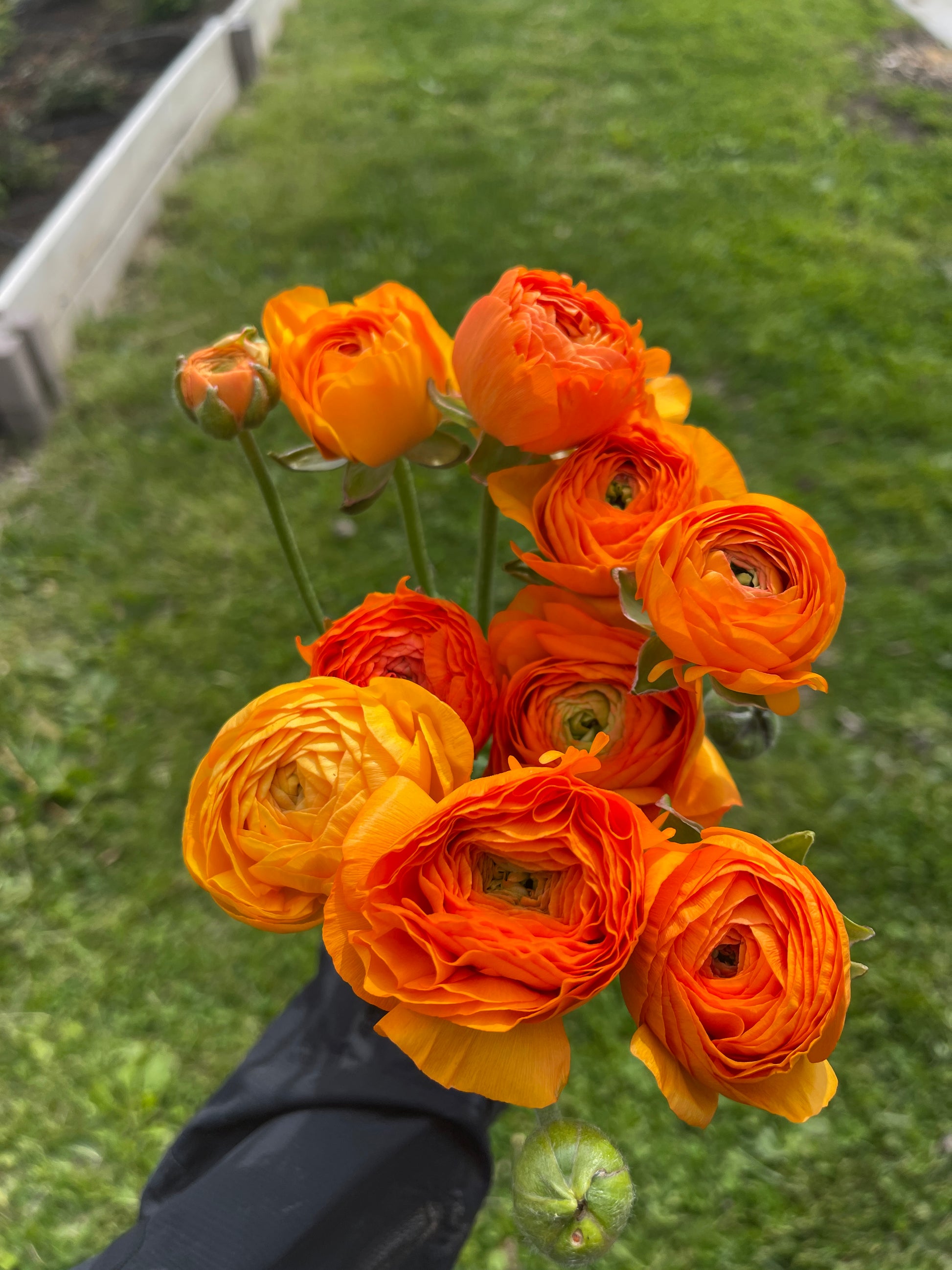 Orange Amandine Ranunculus are such a cheerful variety of Amandine ranunculus. They are workhorses and produce a mix of pure orange flowers as well as some with green or brown centers, which made for a beautiful variety of blooms.