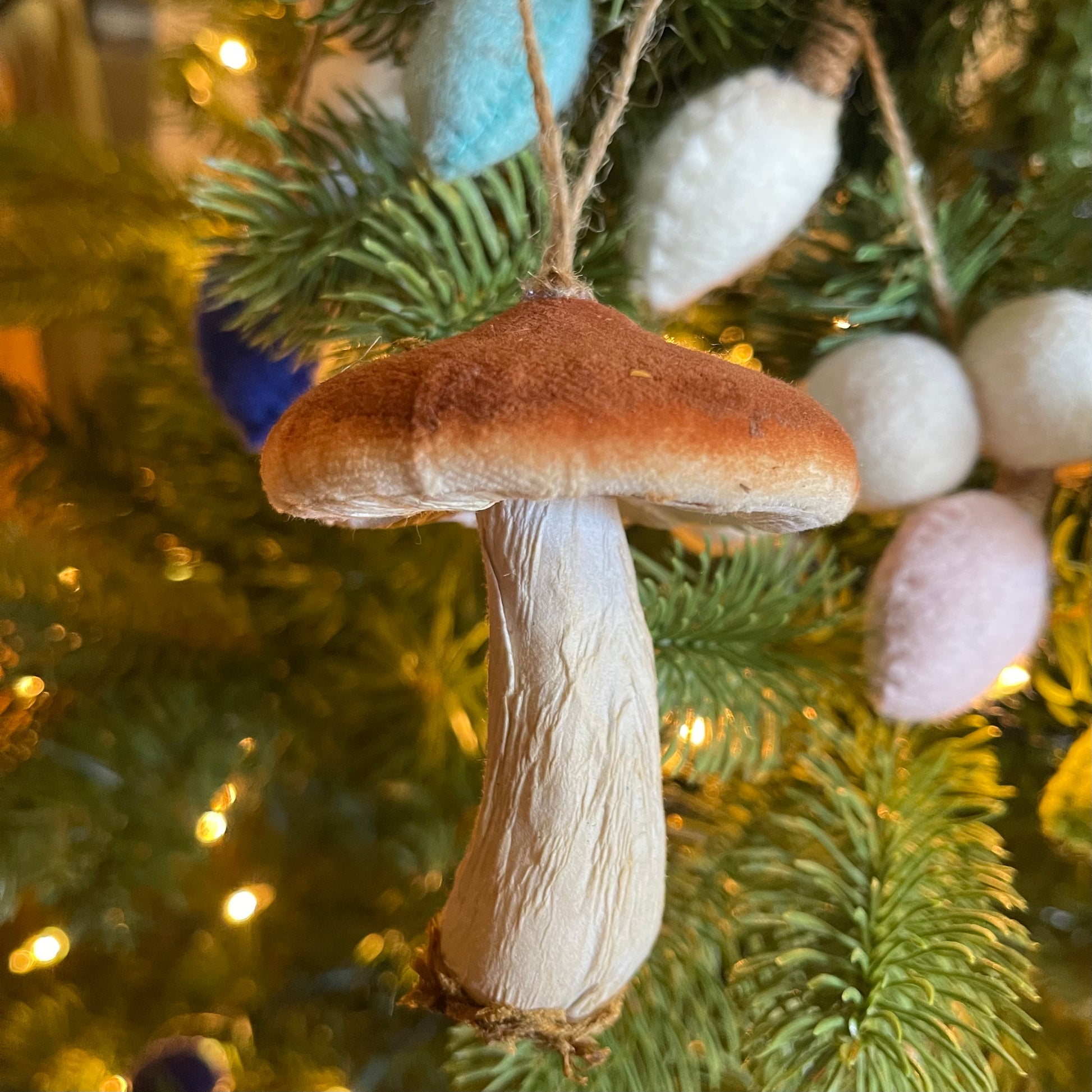 This cute little mushroom ornament looks freshly foraged from the forest!